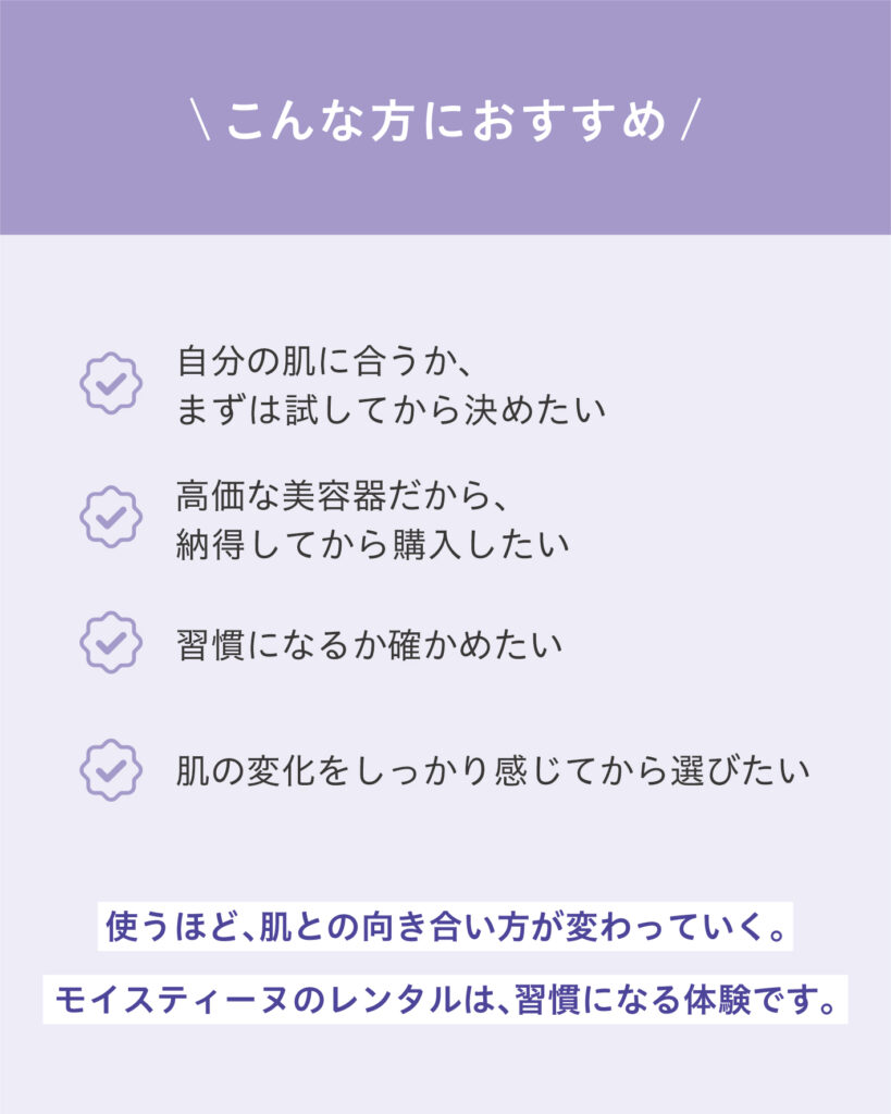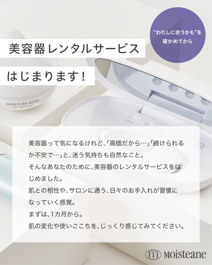 医療機器メーカーによる研究・開発から誕生したモイスティーヌ その思いは潤いによってすべての肌を美しく輝かせたいという願いで、美容器との相乗効果を高める商品を開発しました